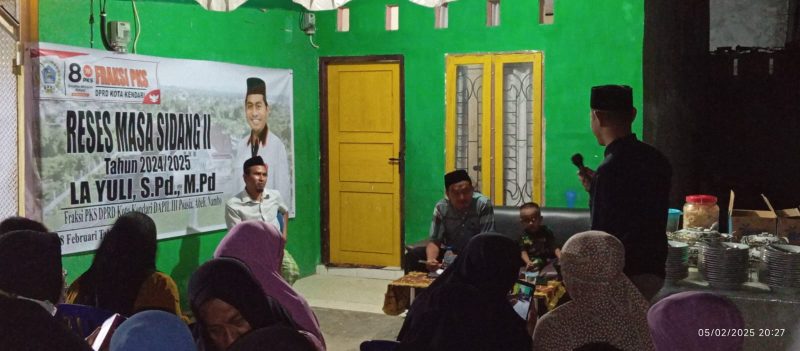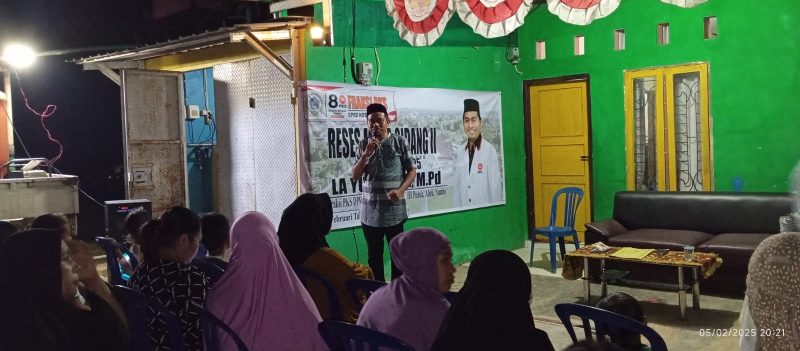 KENDARI, INFORMASISULTRA.COM – Anggota DPRD Kota Kendari, La Yuli, S.Pd., M.Pd., menggelar pertemuan dengan warga di Andonuhu Regency, RT 36, RW 1, Kelurahan Andounuhu, Kecamatan Poasia. Pertemuan ini bertujuan untuk menyerap aspirasi masyarakat serta menindaklanjuti berbagai permasalahan yang masih menjadi perhatian di wilayah tersebut.
