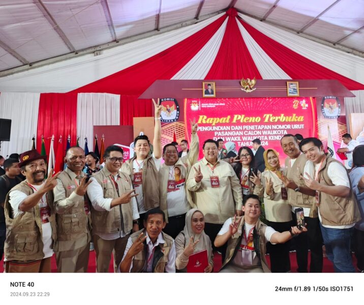 KENDARI, INFORMASISULTRA.COM – Dua selebriti papan atas yakni Dirly dan Nicky Tirta nampak hadir pada kegiatan Rapat Pleno Terbuka penetapan dan pencabutan nomor urut pasangan calon (Paslon) Wali Kota dan Wakil Wali Kota Kendari, yang digelar Komisi Pemilihan Umum (KPU) Kota Kendari, Senin malam, 23 September 2024.