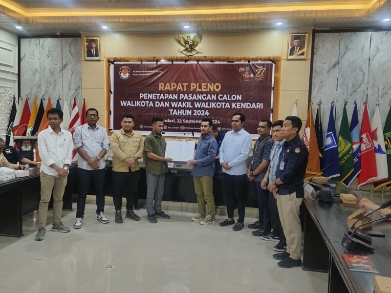 Penetapan tersebut dirangkaikan dengan penyerahan berita acara penetapan Calon Wali Kota dan calon Wakil Wali Kota Kendari yang dilaksanakan dikantor KPU Kota Kendari Minggu, 22 September 2024.