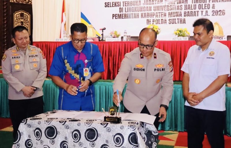 KENDARI, INFORMASISULTRA.COM – Kepolisian Daerah Sulawesi Tenggara (Polda Sultra) resmi menjalin kerja sama strategis dengan Universitas Halu Oleo (UHO) Kendari dalam penguatan pelaksanaan Assessment Center Polri.