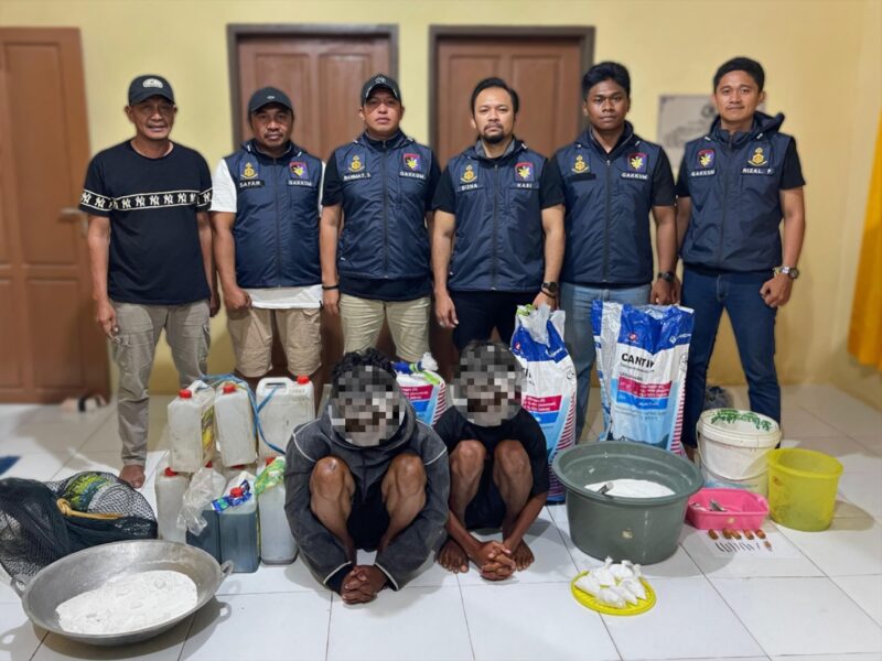 KENDARI, INFORMASISULTRA.COM – Subdit Gakkum Ditpolairud Polda Sultra mengamankan dua terduga pembuat bahan peledak di wilayah pesisir Kelurahan Anaiwoi, Kecamatan Tanggetada, Kabupaten Kolaka, Sulawesi Tenggara.