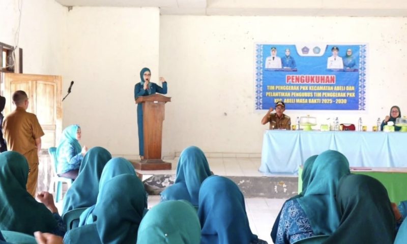 Shintya Putri Anawula Sudirman mengukuhkan sekaligus melantik jajaran pengurus TP PKK Kecamatan Abeli di aula kantor kecamatan abeli yang di hadiri camat abeli Rakhmat, S.Sos. dan jajaran lurah sekecamatan abeli.